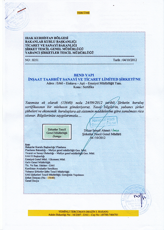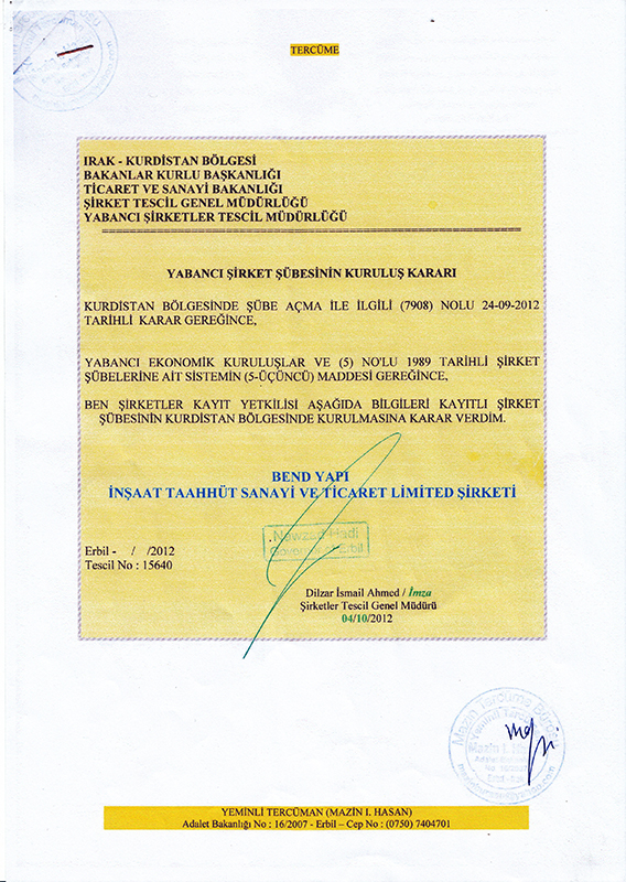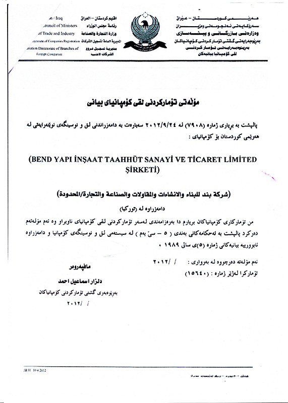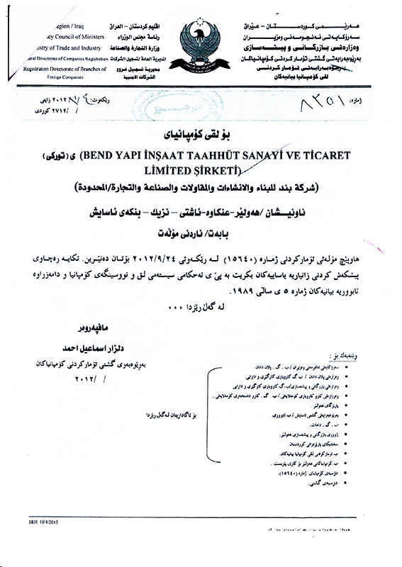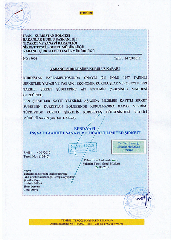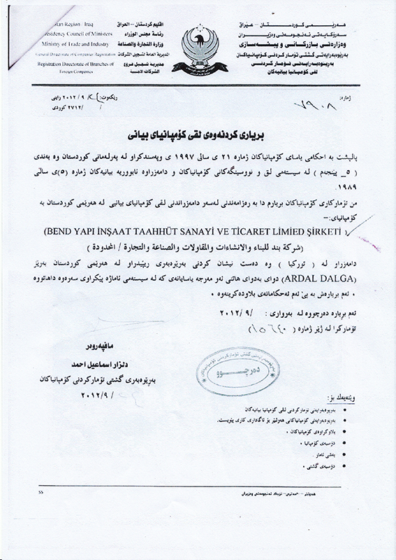 Irak İşyeri Açma Ruhsatı - Türkçe